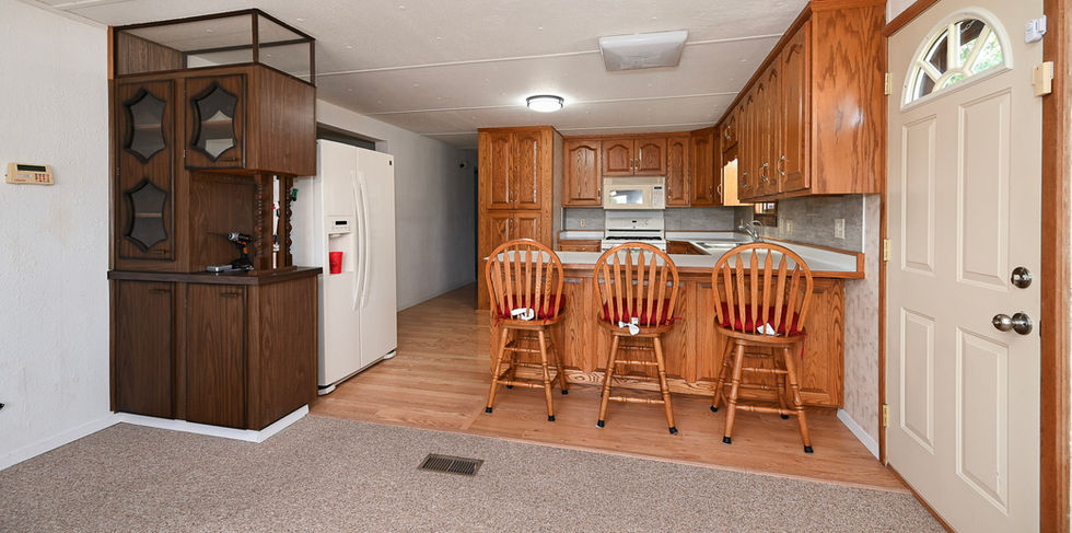 Well cared for since 1981, this 3 bedroom, 1 bath mobile home shows true pride of ownership! The spacious kitchen features classic oak cabinetry, updated house-style windows, and durable laminate flooring. Recent updates include a new roof (2022), as well as an updated furnace and central air for year-round comfort.