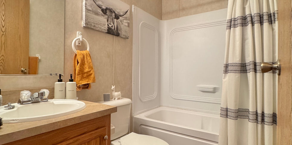 King-sized bed? No problem in the spacious primary bedroom, complete with walk-in closet and ensuite full bath with soaker tub and linen storage. The 2 guest bedrooms are at the front of the home and share the main full bath.