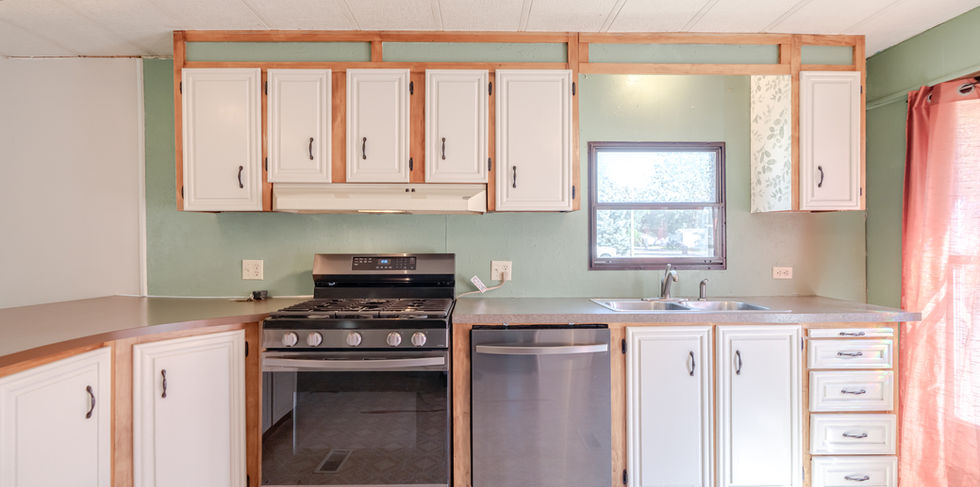 range, refrigerator, dishwasher, washer, dryer, window treatments